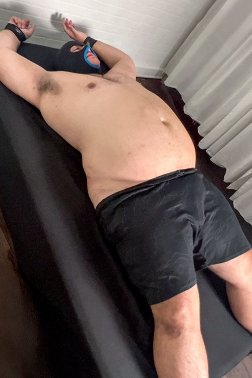 SCENE INFORMATION: Let me put this into perspective for you. Six feet seven inches, nearly five hundred pounds, size TWENTY feet! The Masked Giant is exactly that - a giant! And also the definition of a gentle giant. He came in and wanted to try something new with tickling. Definitely got some reactions on his feet, but his upper body is what makes him really start to bellow with laughter!